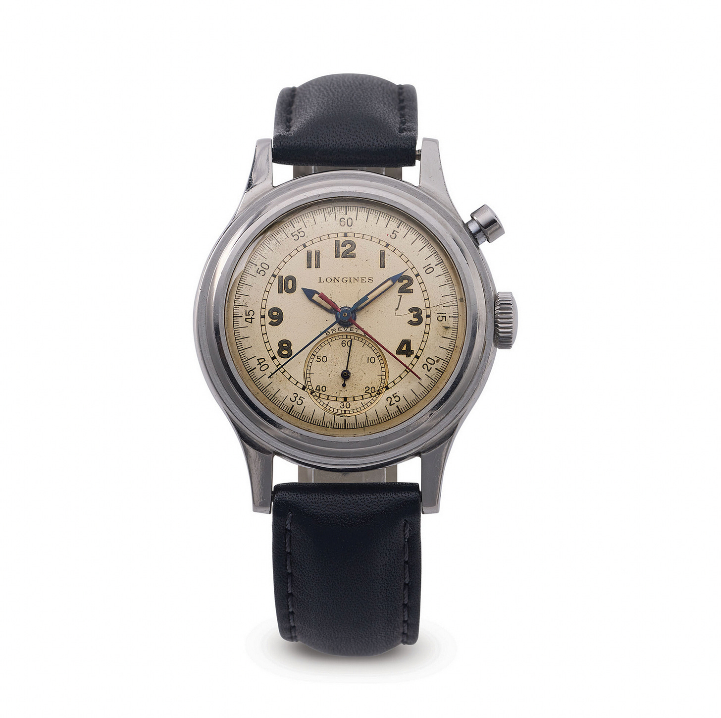 The Longines 12.68z flyback represented a disappearing category: the modestly sized, mechanically ambitious tool watch built before luxury hardened into posture. Its mid-century proportions—restrained case diameter, svelte lugs, clean numerals—prioritized clarity without erasure. The 12.68z movement was historically meaningful: Longines had been one of the few manufacturers producing true in-house flyback chronographs in the 1940s–50s, and this technical self-sufficiency anchored the reference in a lineage now widely admired. Repairability relied on watchmakers versed in vintage chronograph calibers, but parts scarcity was mitigated by the movement’s relative simplicity and the persistence of donor watches. Collectors responded to pieces like this not through the lens of hype but through the quieter impulse to preserve industrial memory. It was a chronograph from a time when functional sophistication arrived without the need for narrative embellishment.