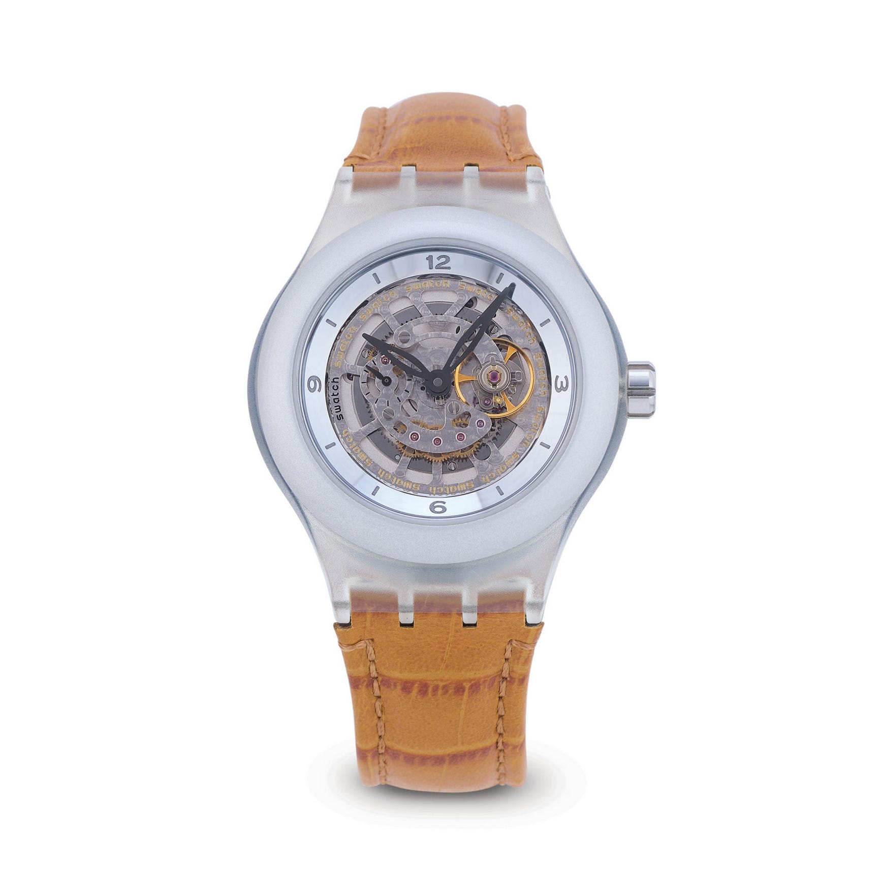 Together, they outlined a thin yet legible history of how mechanical watches persisted after their practical necessity had collapsed. The Longines represented the era when Swiss industry still believed utility and refinement could coexist without marketing theatrics. The 1990s Girard-Perregaux Ferrari edition captured the decade’s love of licensed identity—prestige by association rather than by movement alone. Breguet’s Type XX revival channeled the martial mythos consumers continued to crave even as real-world aviation became more automated and less romantic. Rolex’s Zenith-powered Daytona stood at the threshold of the modern collecting economy, a watch that predated the “in-house absolutism” that would later be declared sacred. And the Swatch Diaphane One offered a radically different proposition: a high complication rendered in plastic, suggesting that playfulness could coexist with mechanical virtuosity.