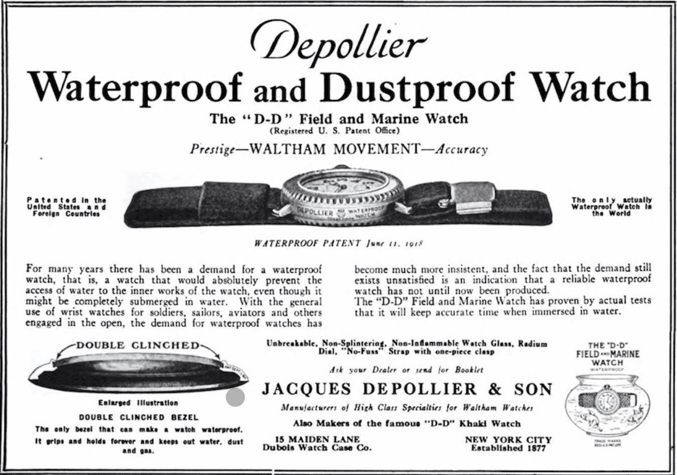 The wartime demands of World War I inspired further developments in waterproof technology, as soldiers at the front required watches that were practical, waterproof, and durable. These developments were made possible through collaborations between watchmakers and the military. Important examples of these collaborations were Tavannes and Depollier.