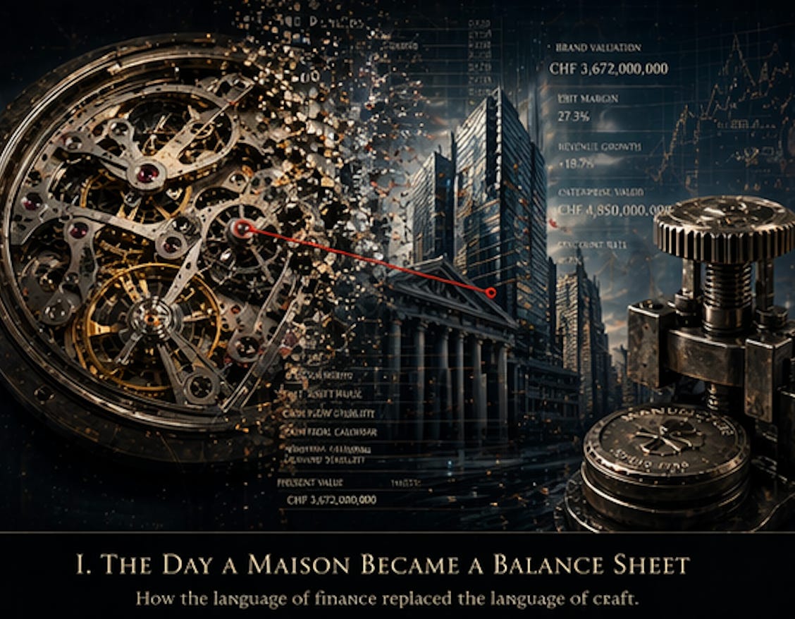 One possible answer is that the financial framework was too transparent. It made watchmaking legible as a consumer goods business, which is precisely what luxury cannot afford to be. The entire pricing architecture of high-end watchmaking depends on the perception that what is being sold is not merely a branded consumer product but something categorically different — something whose value is grounded in craft, in time, in the irreducible singularity of the handmade. The mythology of the movement solved a problem that brand economics alone could not: it provided a justification for margins that demand stability, however real, could never fully explain.