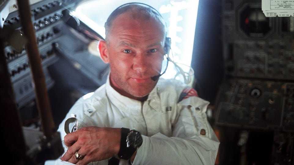 Fig. 1: Edwin Aldrin wearing an Omega Speedmaster during the Apollo 11 mission