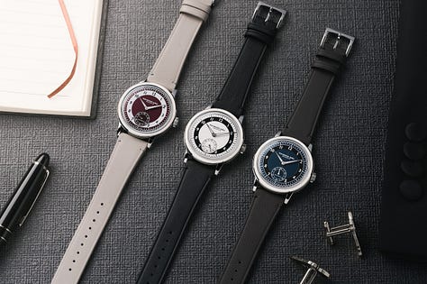 The tuxedo dial, which the press materials describe as experiencing “a notable revival,” is indeed having its moment. Longines has one. Oris just released a “Bullseye.” Serica returned to the format after a three-year hiatus. Laco dressed its centenary piece in two-tone formality. Everyone, it seems, has remembered that contrast aids legibility, that sector layouts organize information elegantly, that certain visual codes never entirely lose their currency. The 1930s called. The industry answered.