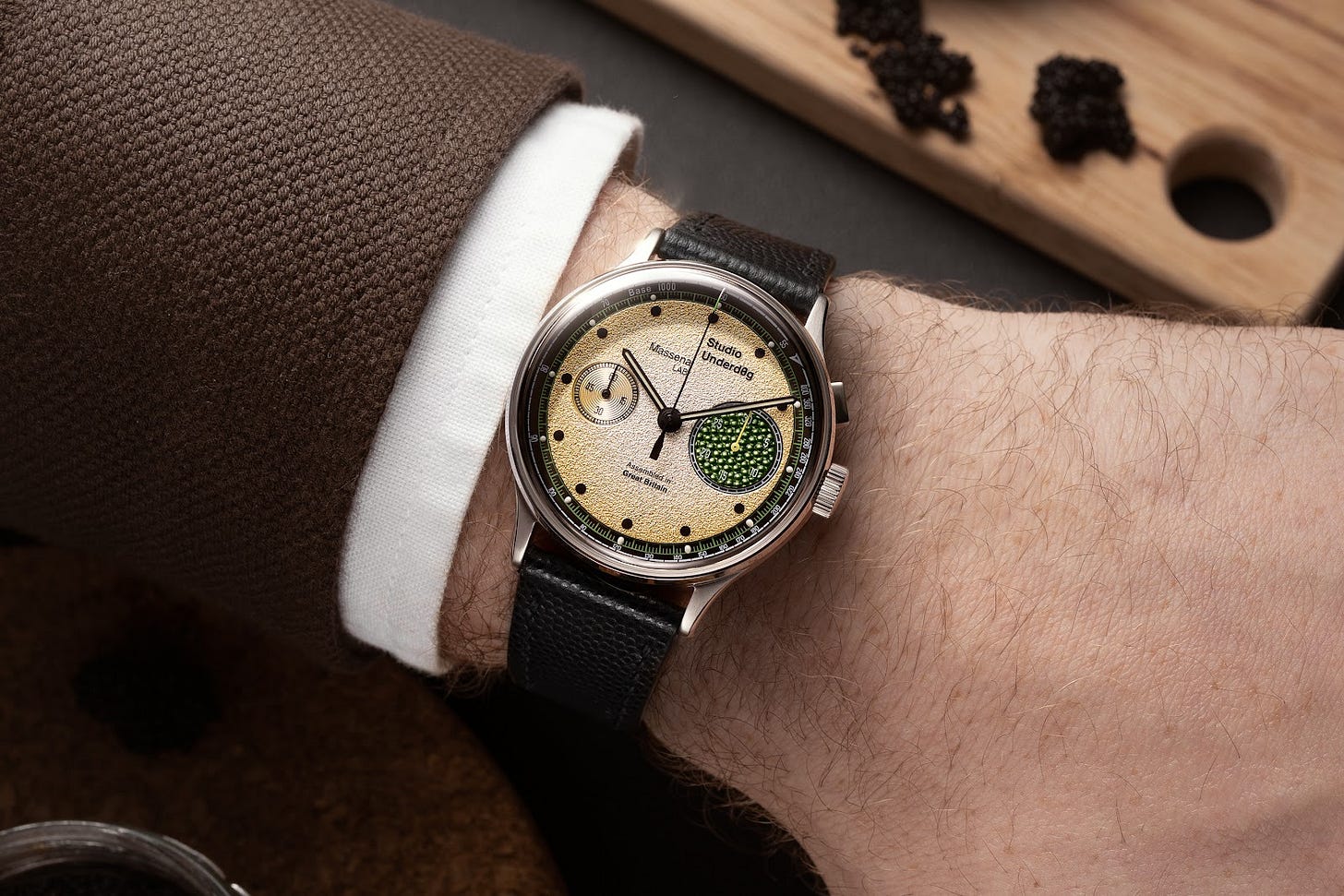 Something is always fermenting at the playful end of contemporary watchmaking. It begins, as it often does, in an unassuming workshop—in this case, Maidenhead, England—where Studio Underd0g has been distilling its own eccentric idea of horological cool. Now it finds itself in partnership with William Massena, the industry’s perennial insider-outsider, to produce a limited chronograph so self-aware it feels like a parody of luxury turned sincere: the 03SERIES Champagne & Caviar.